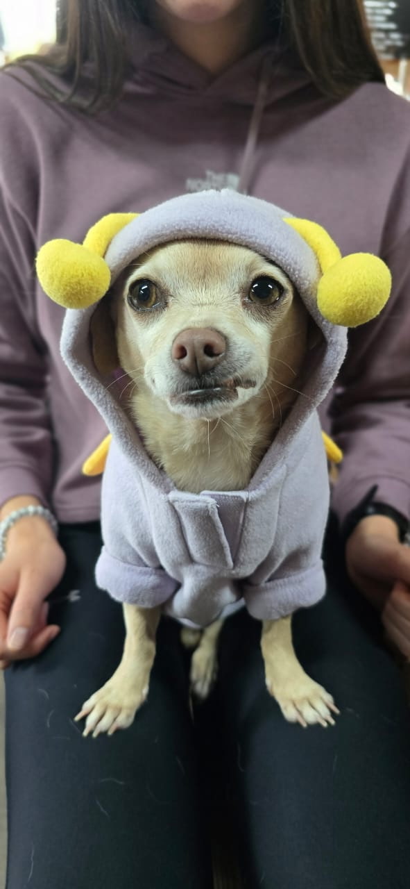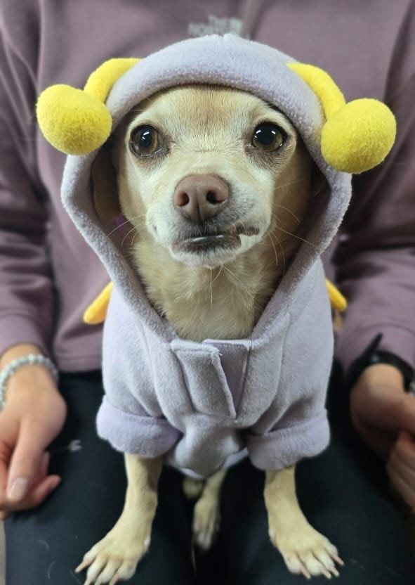 Deva is a 13-year-old Chihuahua mix who has been part of the practice since we opened; she was adopted from a shelter in Medford, Oregon when she was just a year and a half old. Her early life included experiences of abandonment and instability, which gives her a quiet, natural sensitivity to emotional environments.