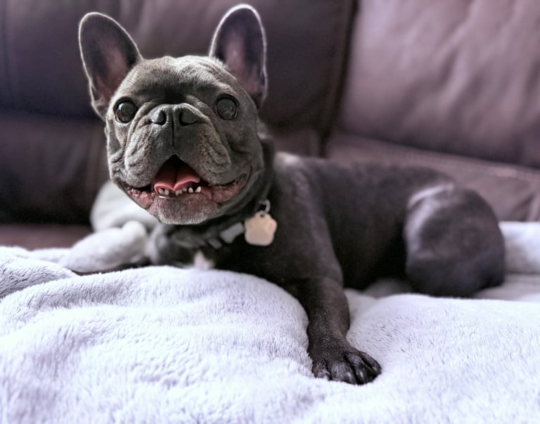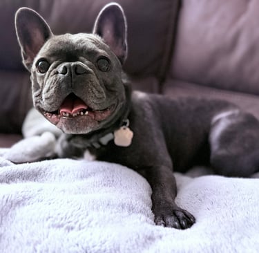 Meet Luna, our therapy companion, a 4-year-old gray French Bulldog who has been joining Kate in the office since she was about one year old. She has a gentle, friendly temperament and loves meeting new people, often helping create a welcoming and calming environment during sessions. She enjoys sitting in clients’ laps or resting quietly by their feet, offering comfort and companionship. Playful by nature, her favorite pastimes include chasing the water hose and playing fetch. Her presence often brings a sense of ease, connection, and lightness to the therapeutic space.