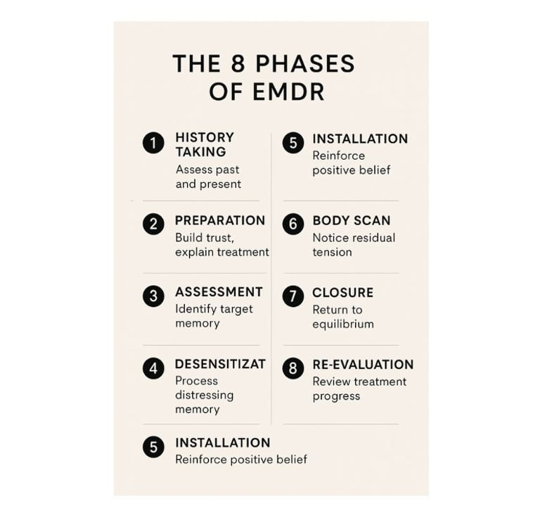 Eye Movement Desensitization and Reprocessing (EMDR) is an evidence-based therapy that helps individuals process and heal from traumatic or distressing experiences. By using bilateral stimulation—such as eye movements or tapping—EMDR supports the brain’s natural ability to reprocess painful memories, reducing their emotional intensity and helping clients feel calmer, safer, and more in control.